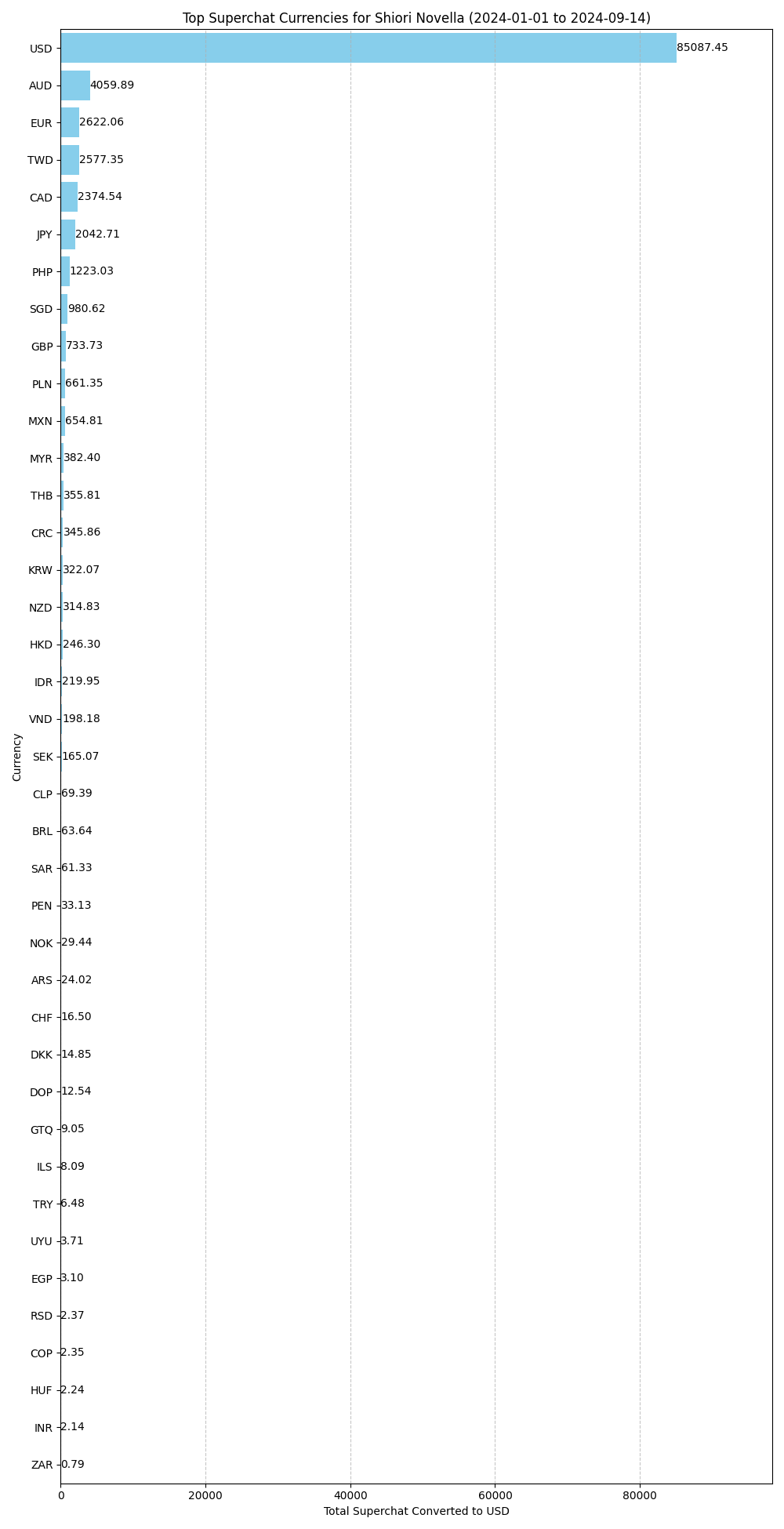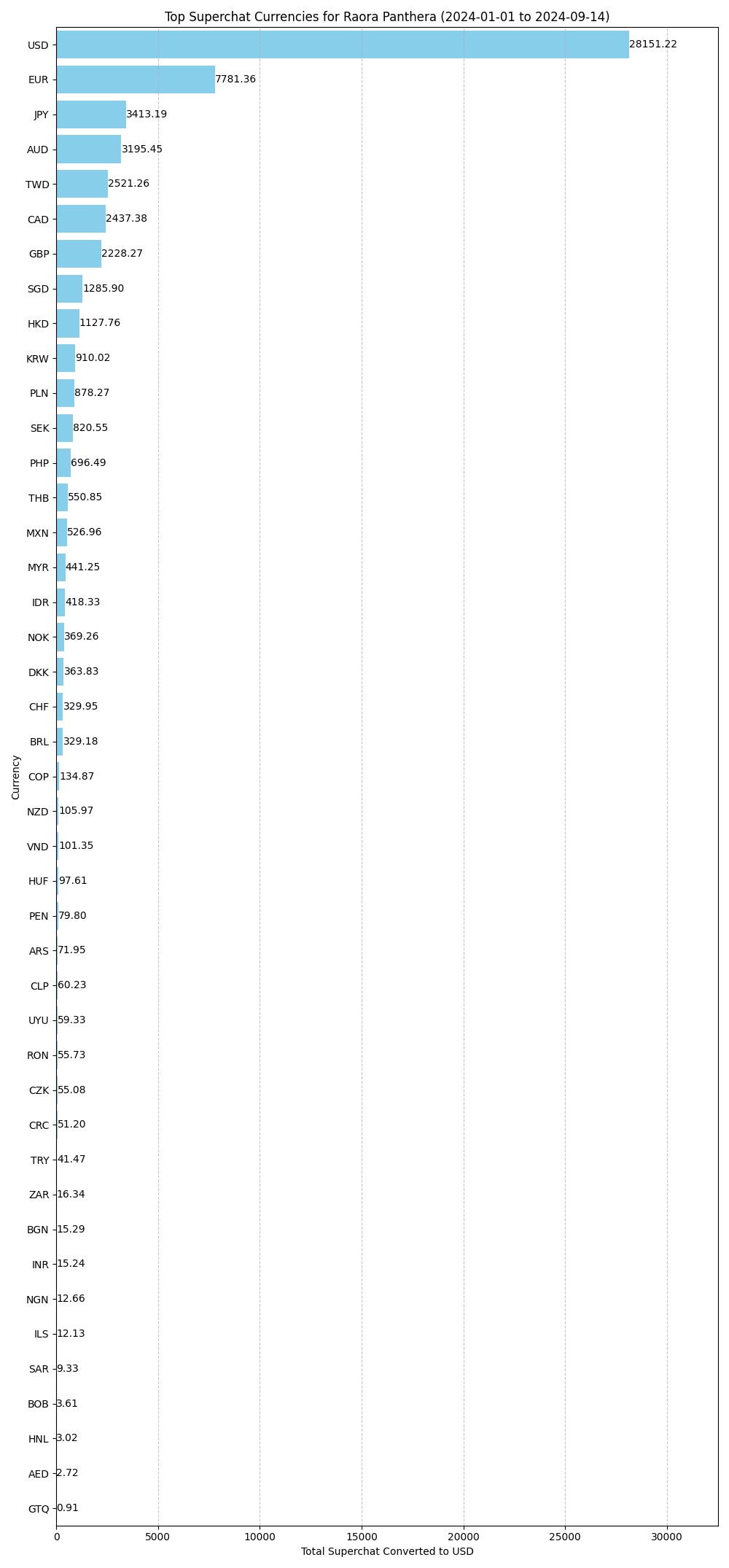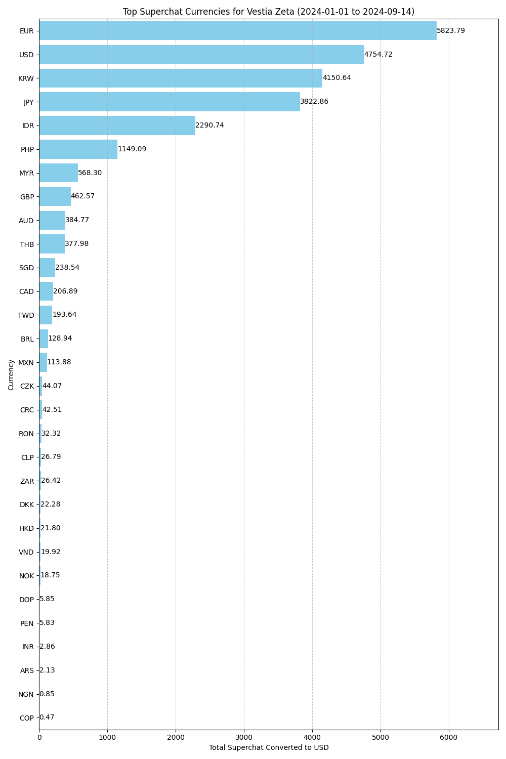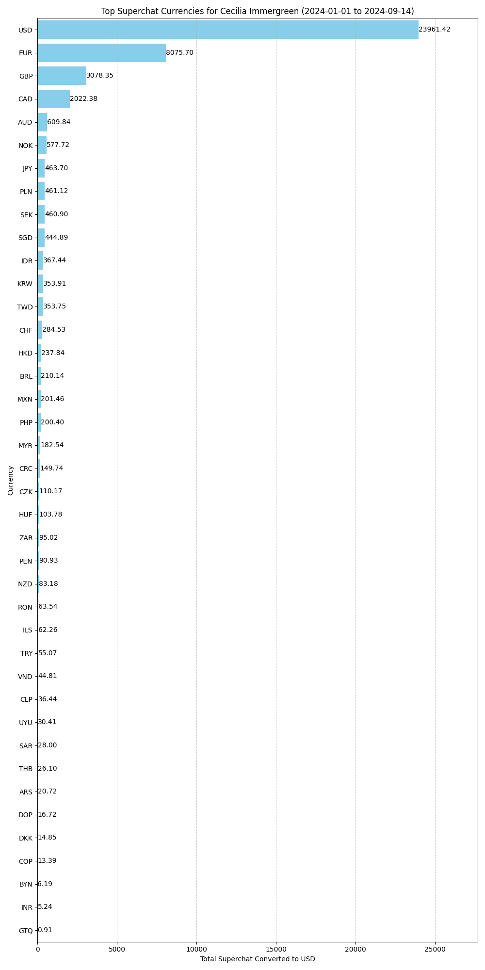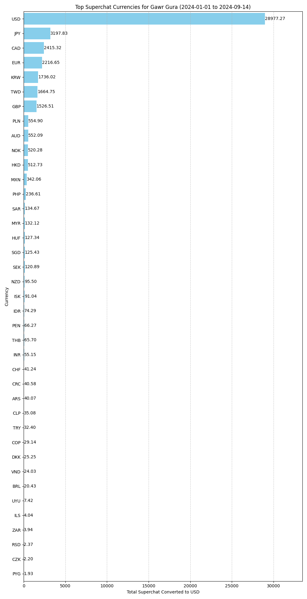 I first substituted non-Latin channel names with their Latin counterparts. Then I parsed the superchats themselves, separating the currency and amount.