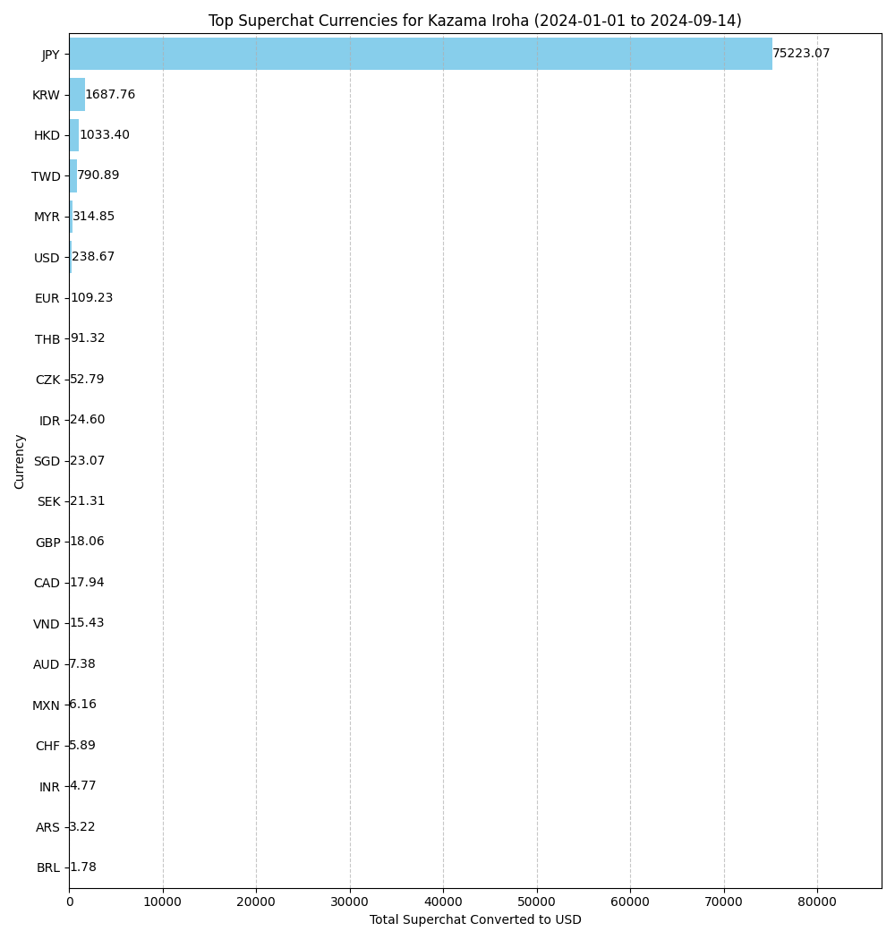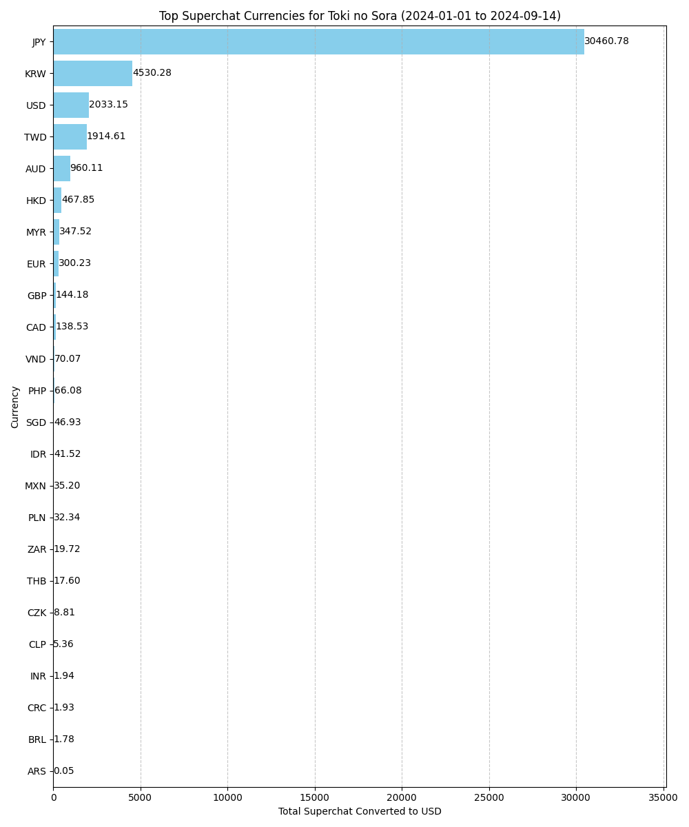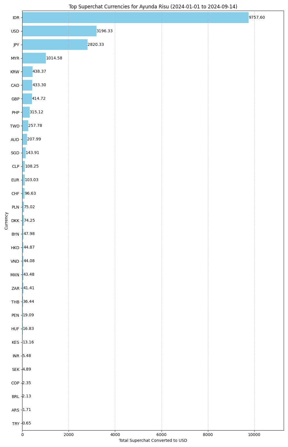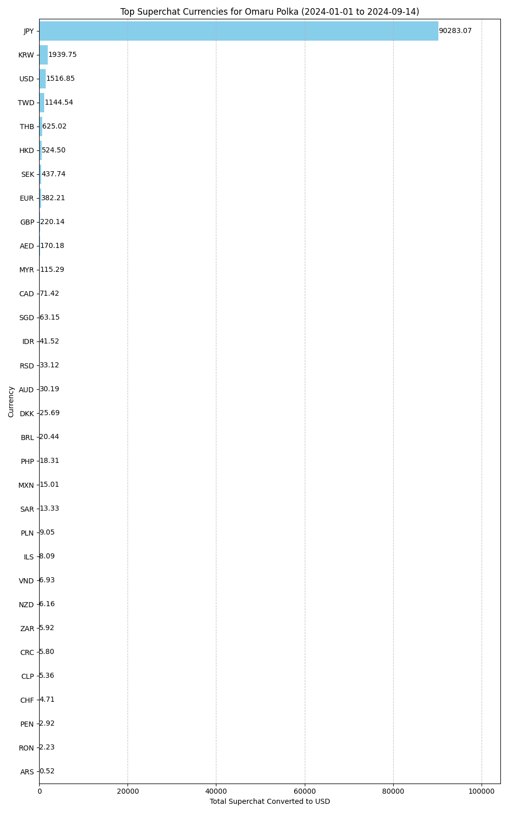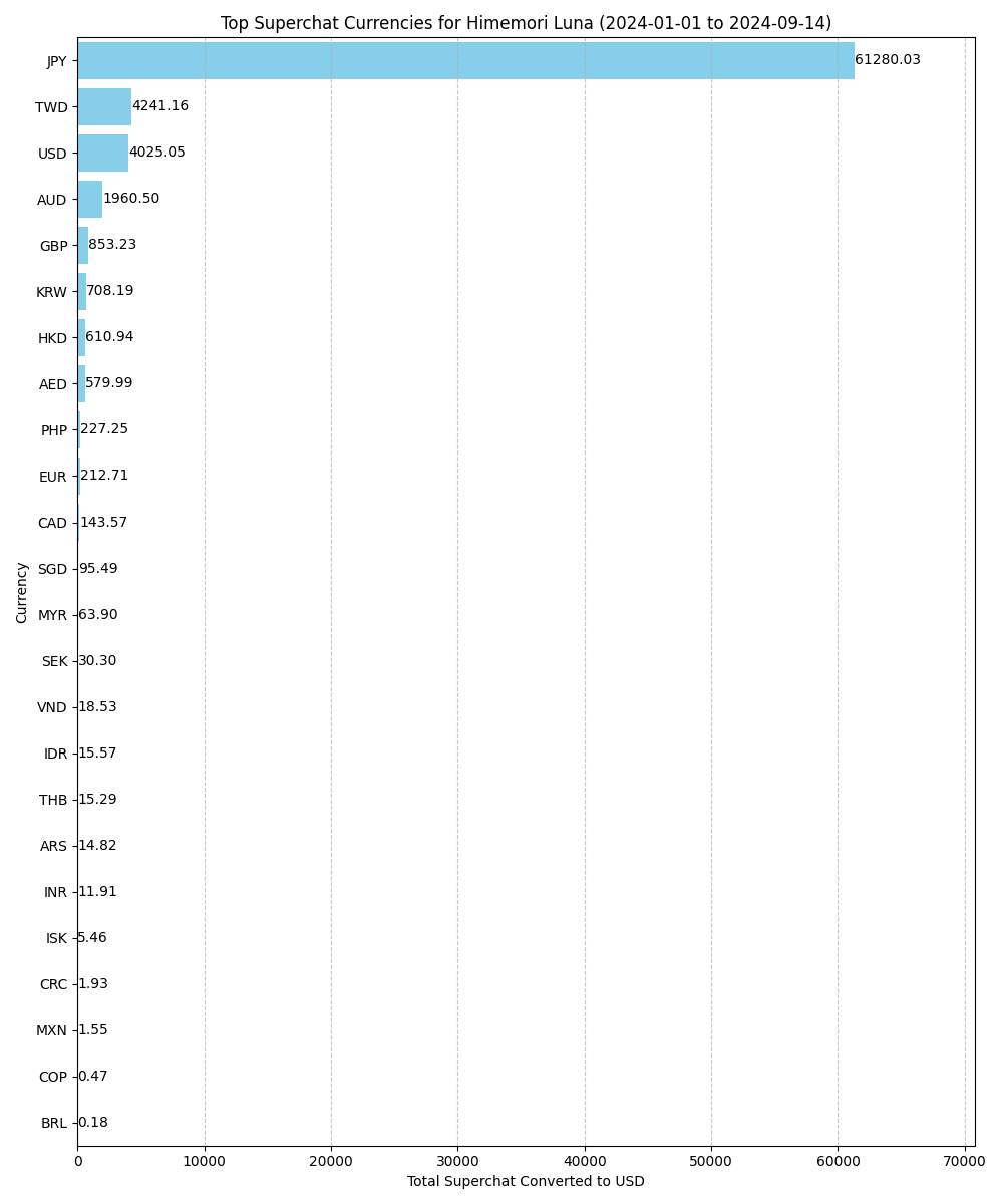 I first substituted non-Latin channel names with their Latin counterparts. Then I parsed the superchats themselves, separating the currency and amount.