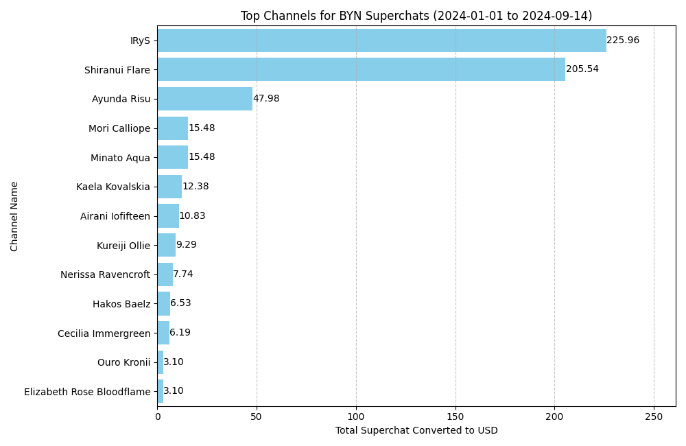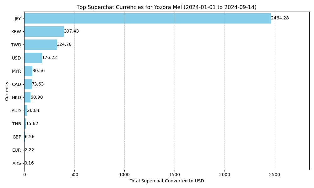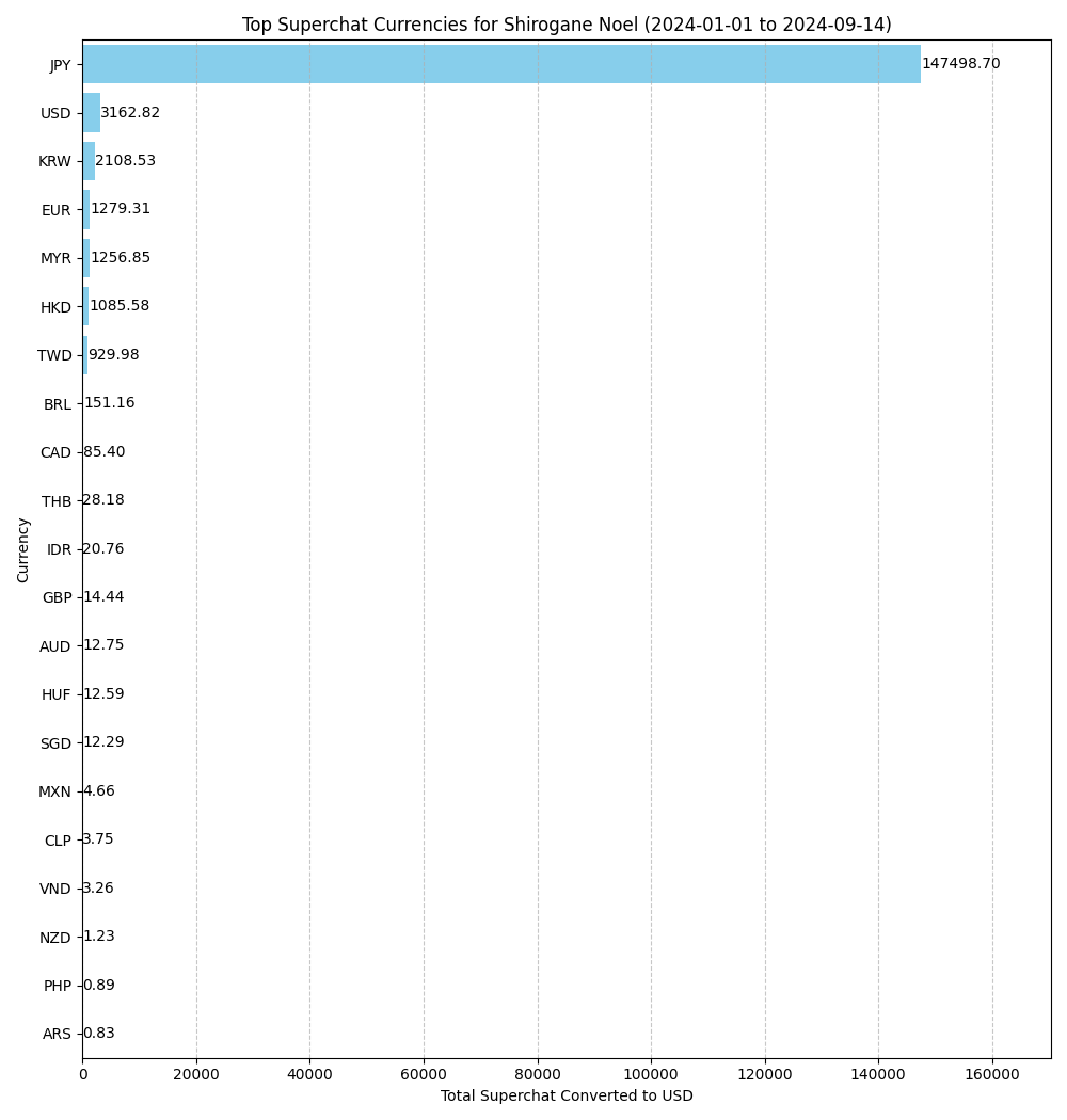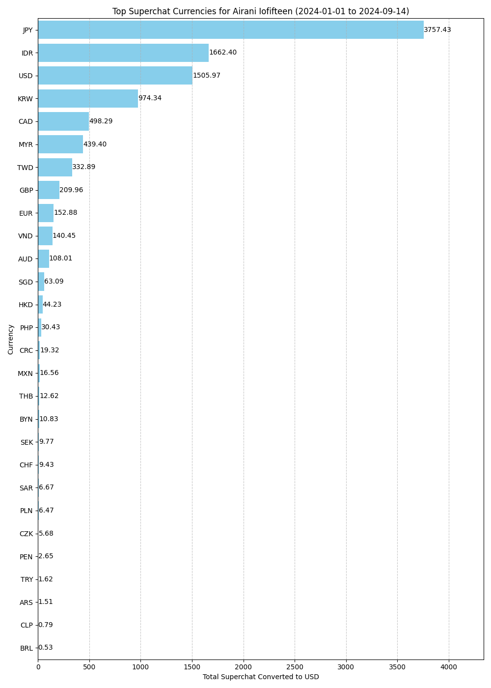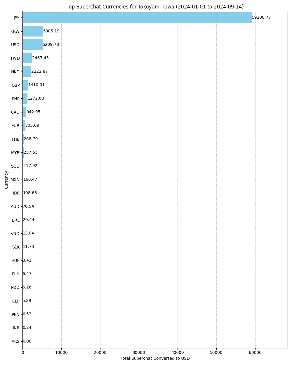 I first substituted non-Latin channel names with their Latin counterparts. Then I parsed the superchats themselves, separating the currency and amount.