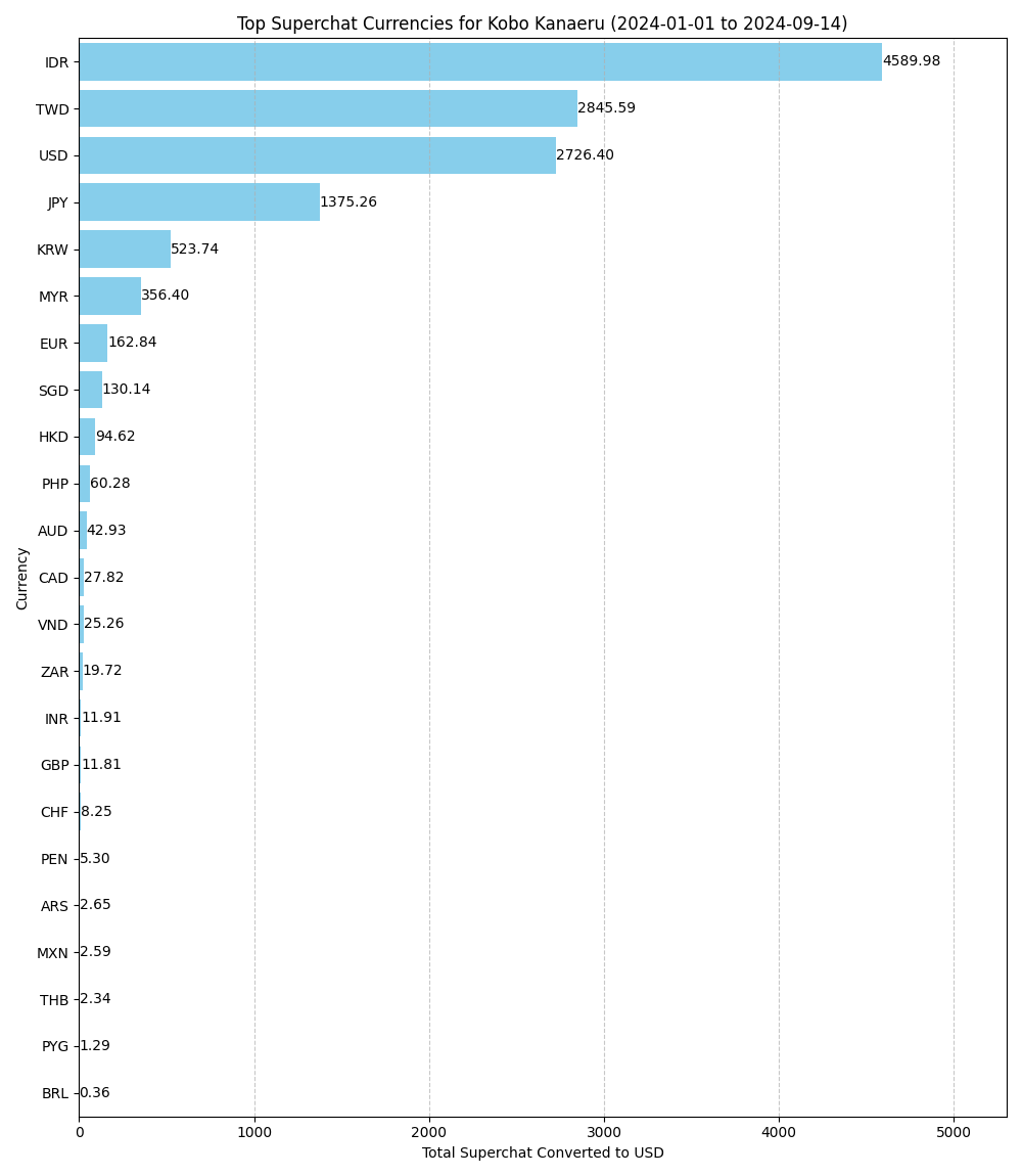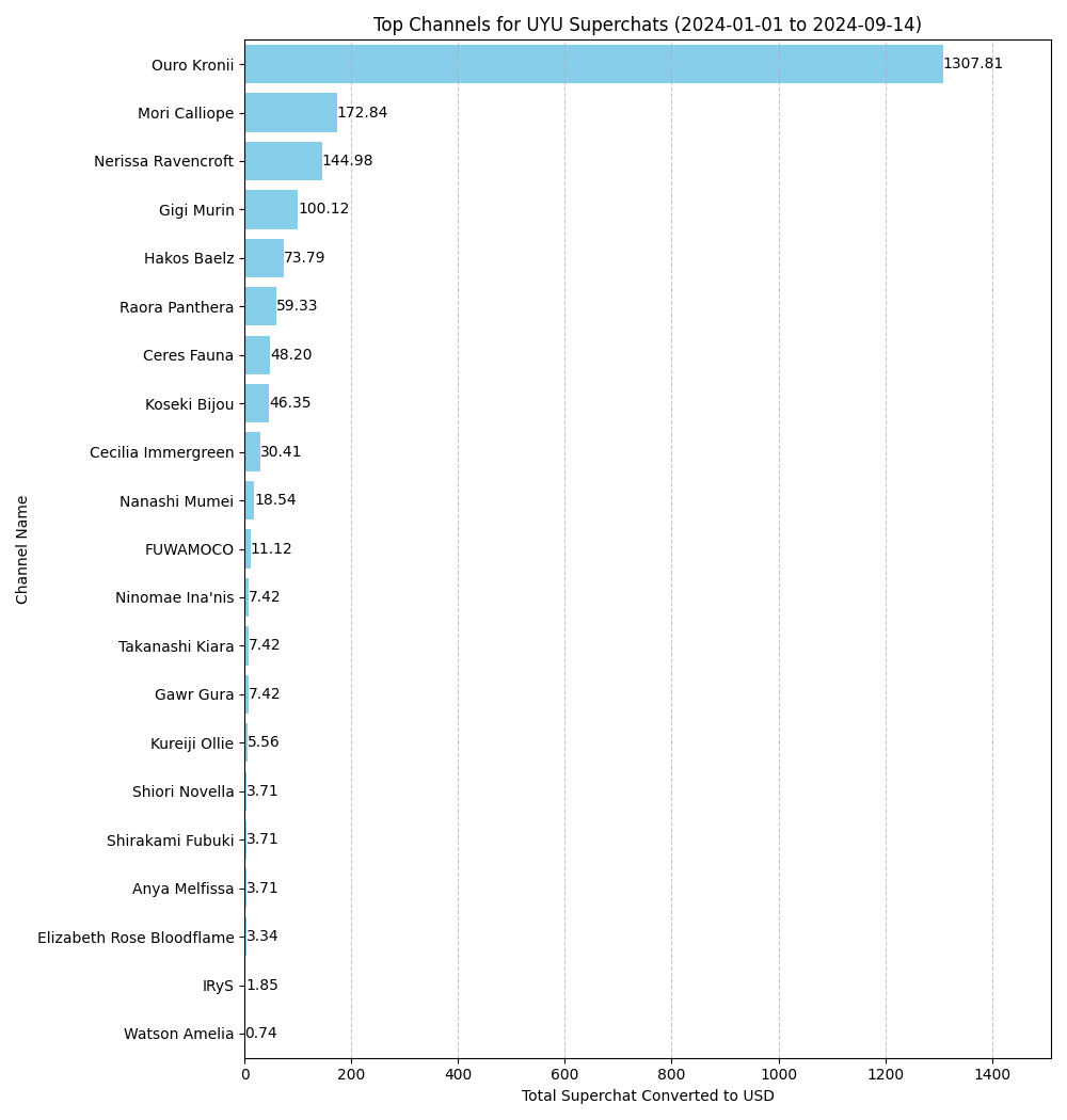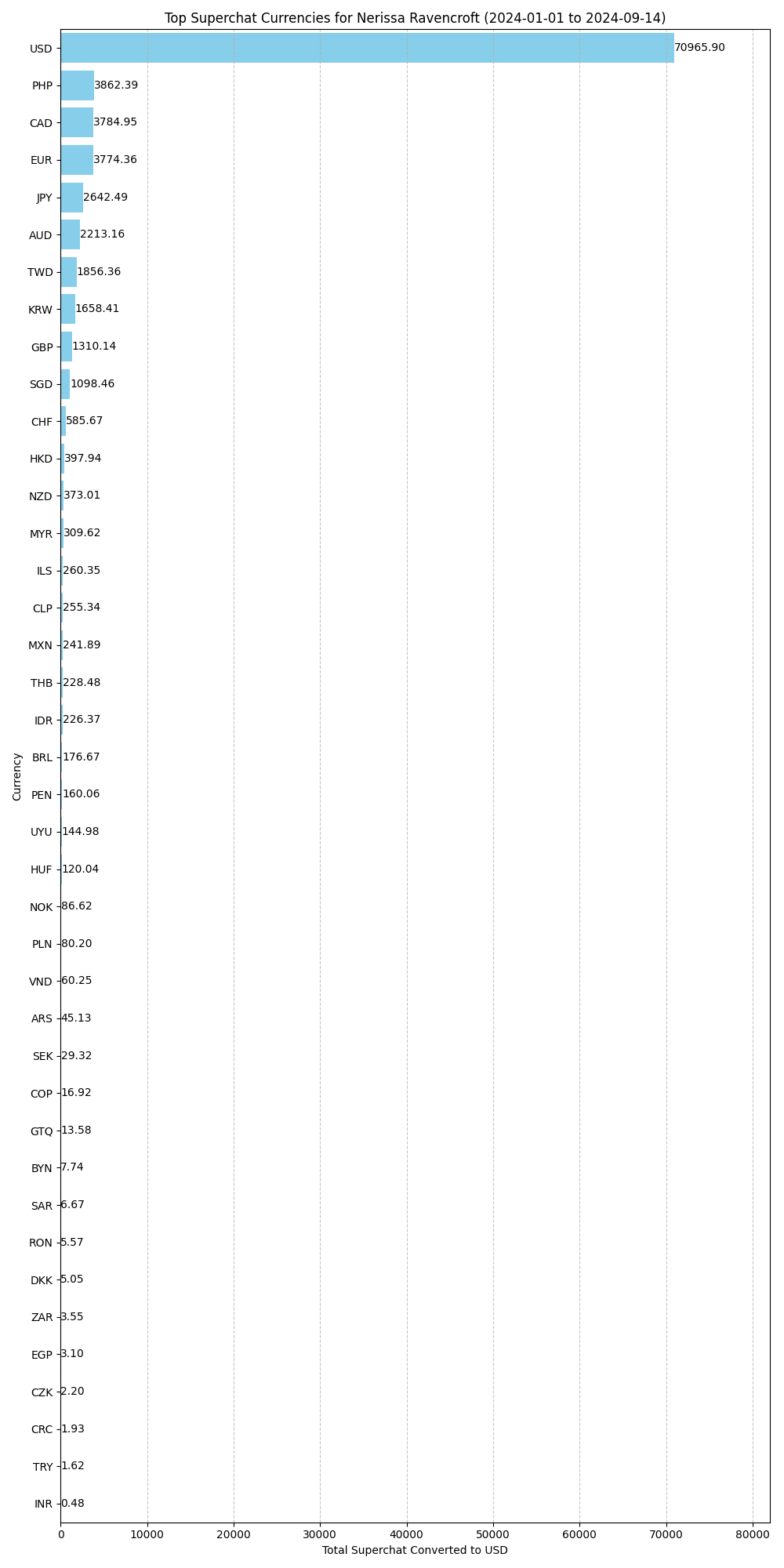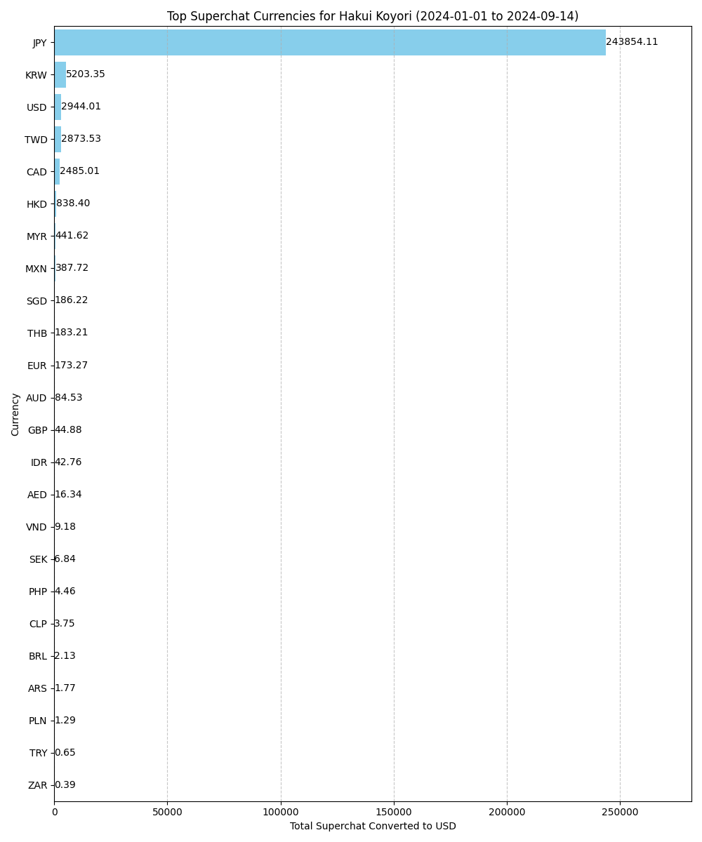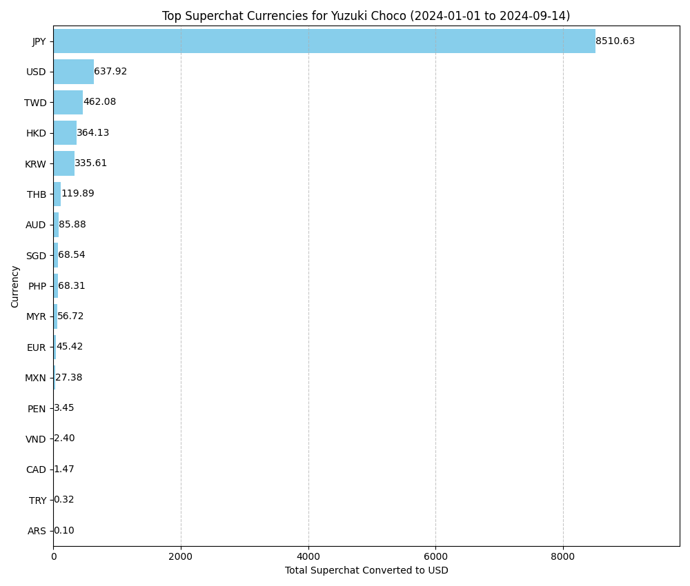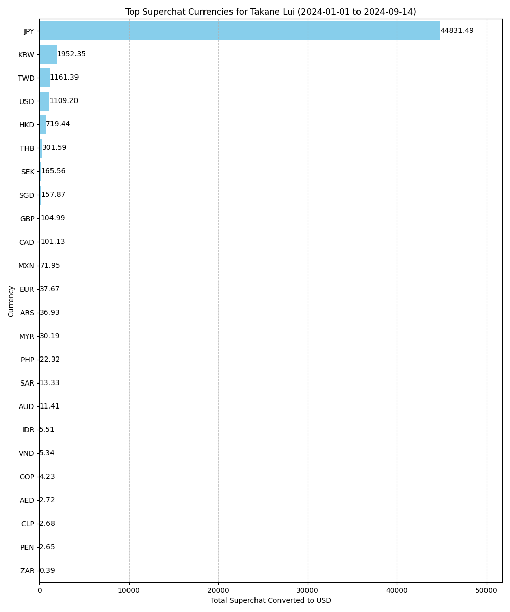I first substituted non-Latin channel names with their Latin counterparts. Then I parsed the superchats themselves, separating the currency and amount.