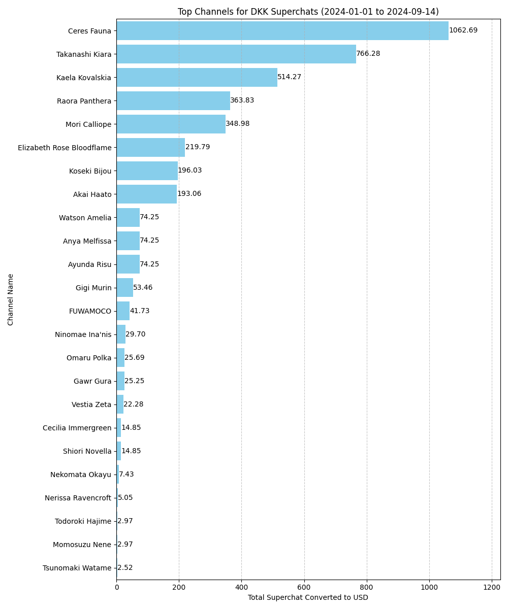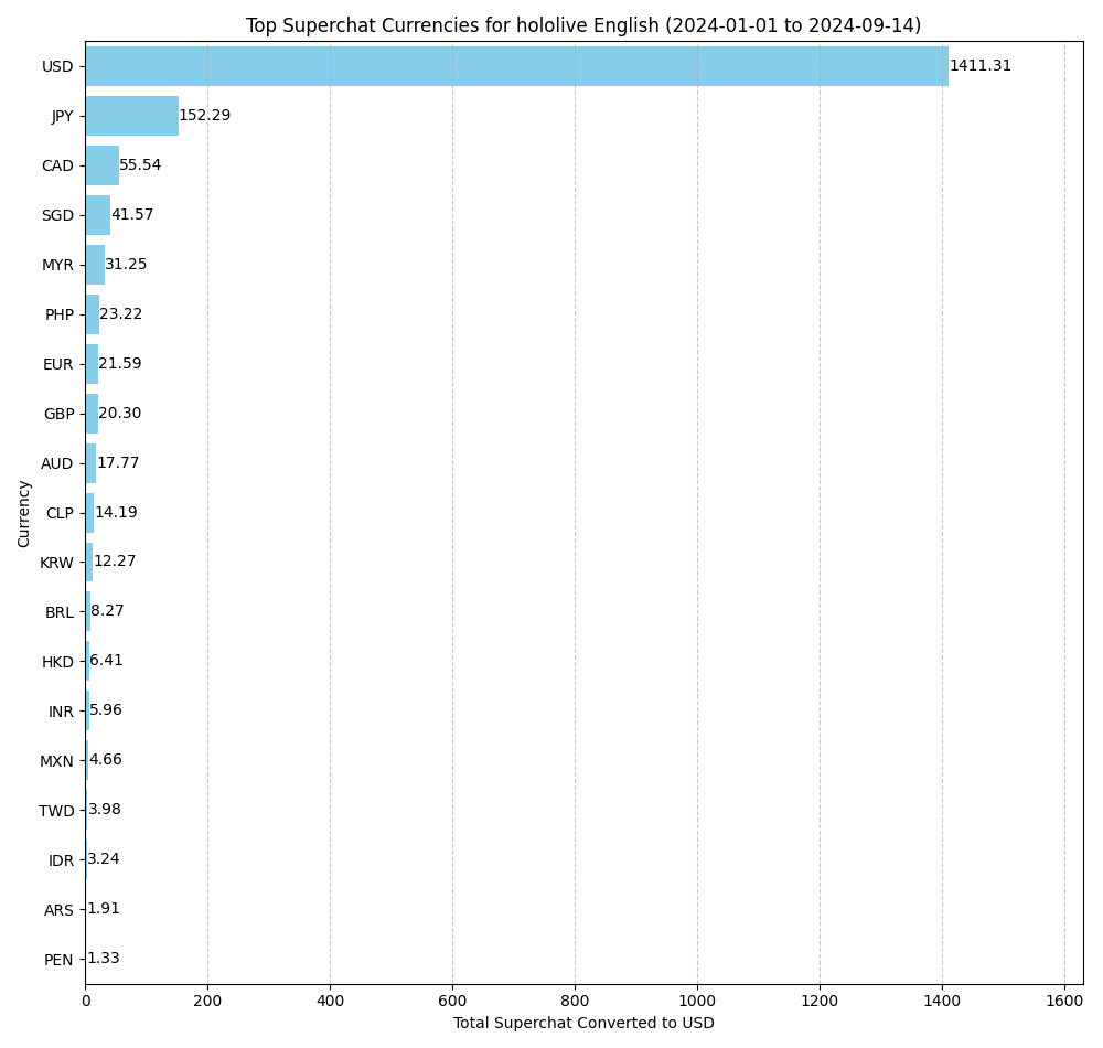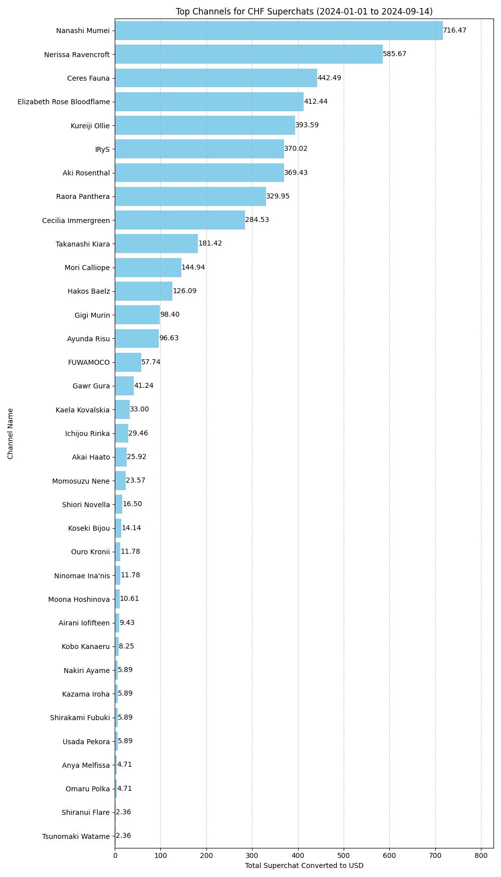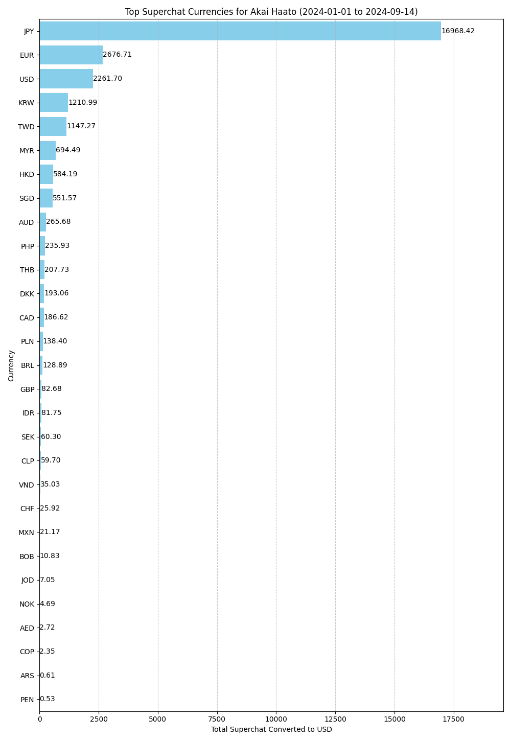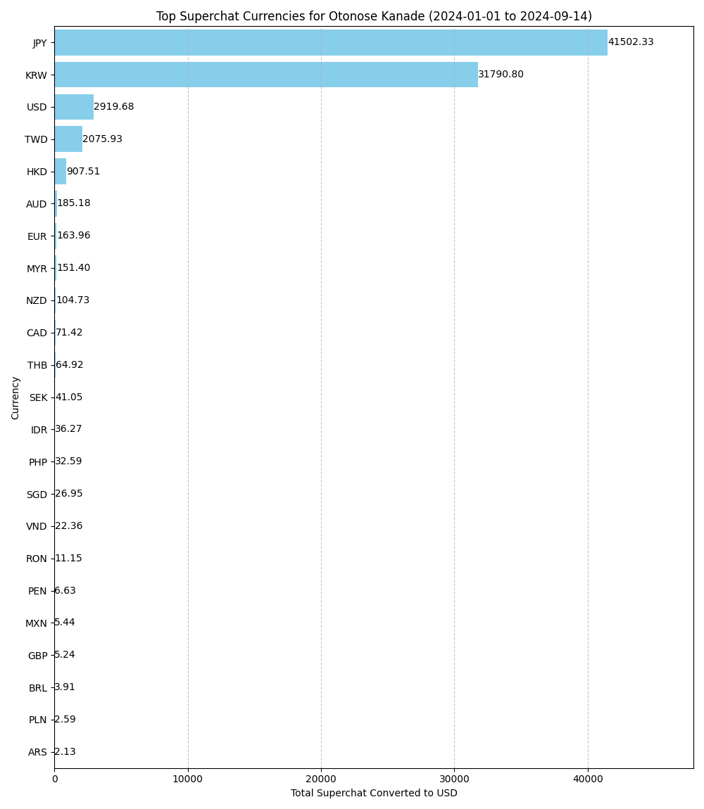 I first substituted non-Latin channel names with their Latin counterparts. Then I parsed the superchats themselves, separating the currency and amount.