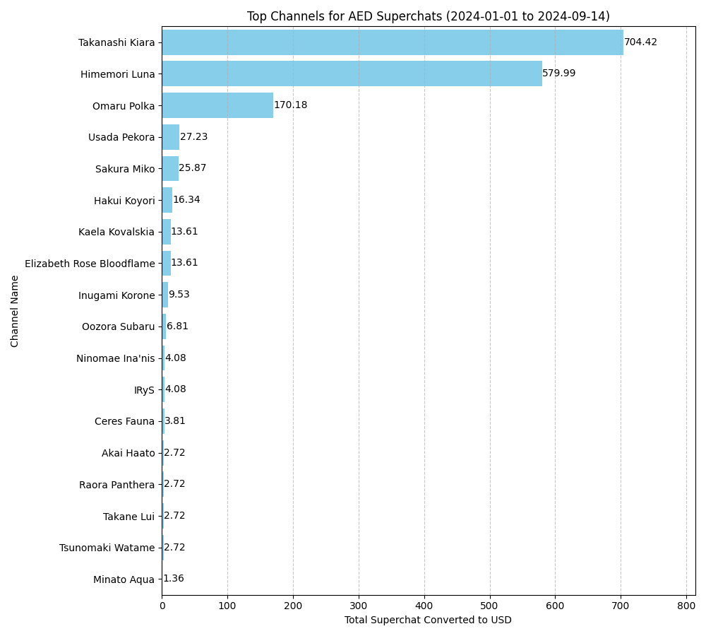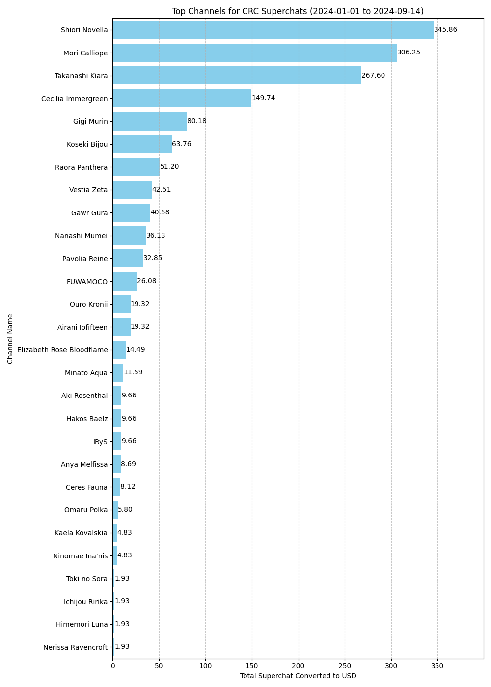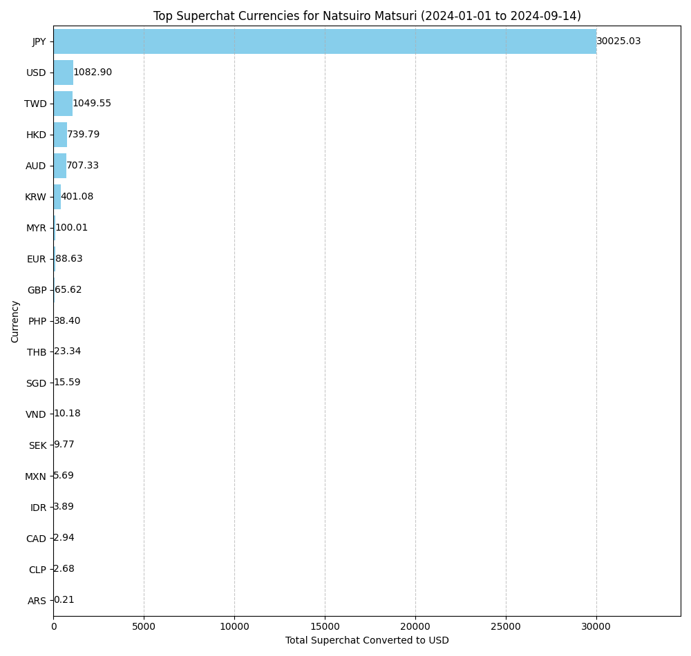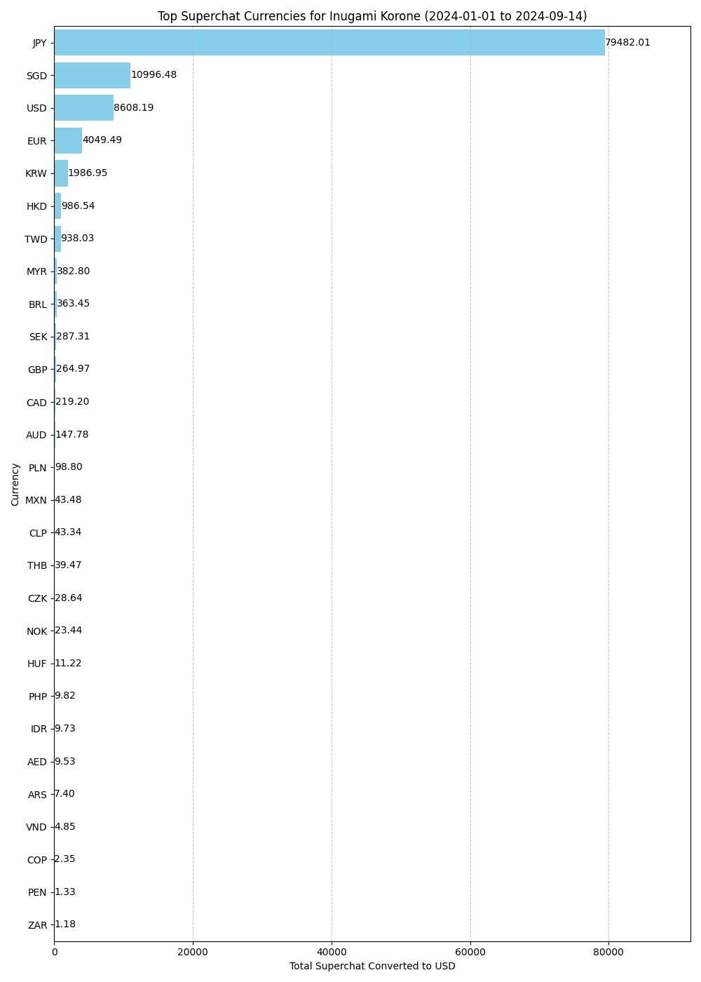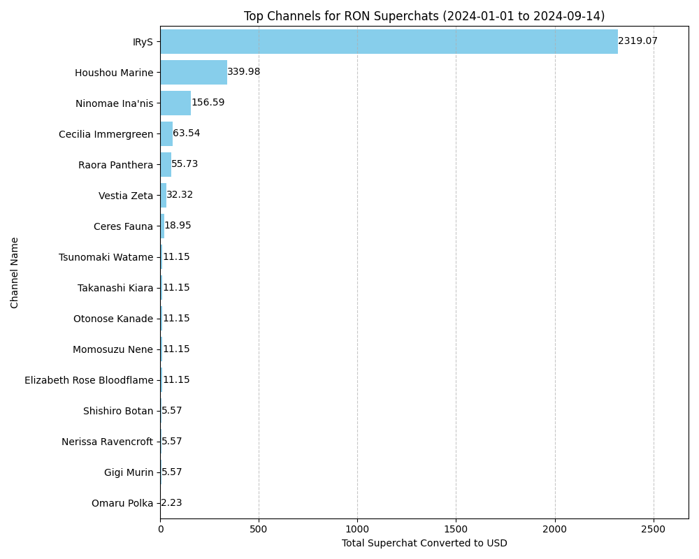 I first substituted non-Latin channel names with their Latin counterparts. Then I parsed the superchats themselves, separating the currency and amount.