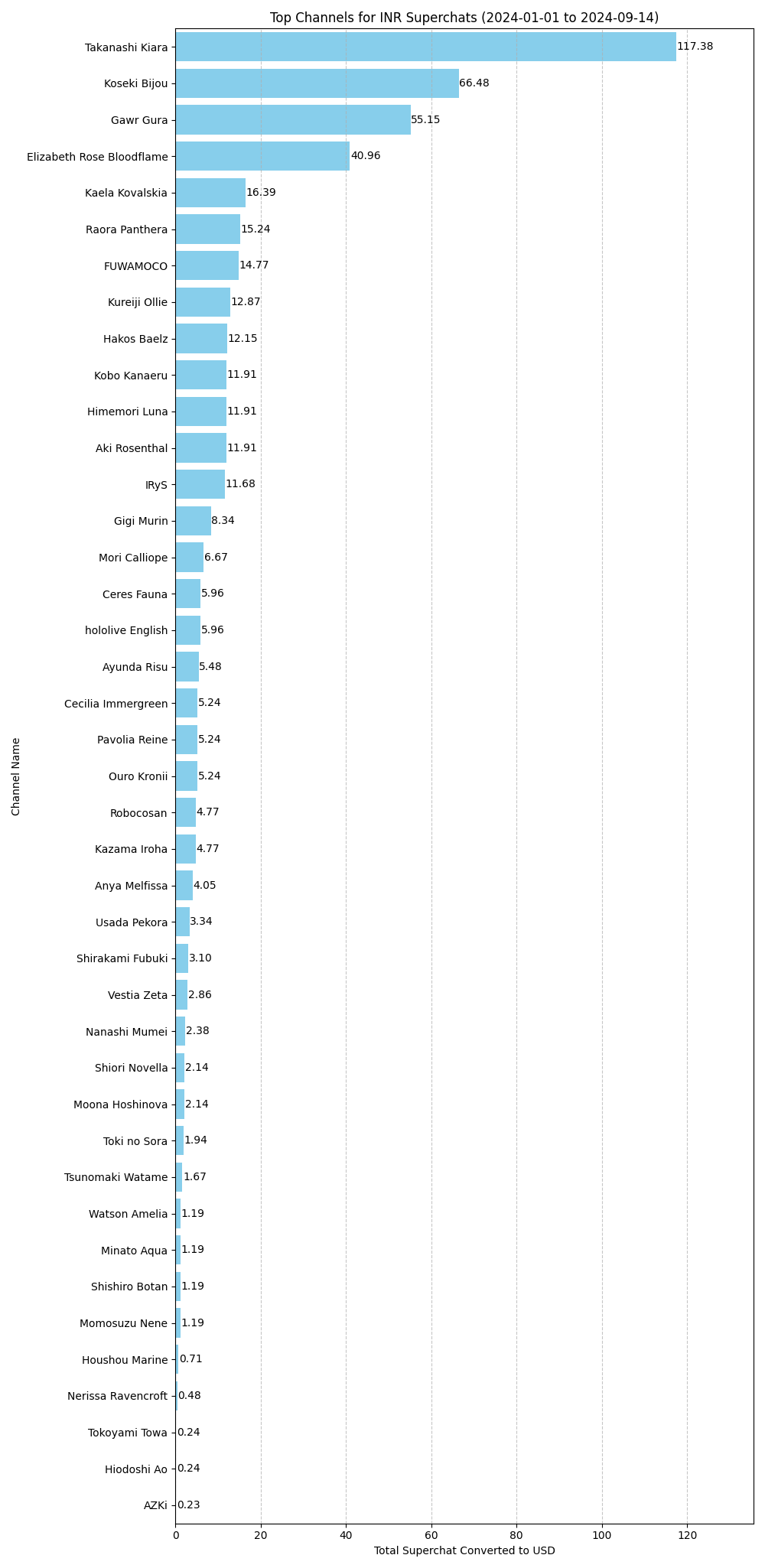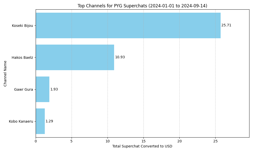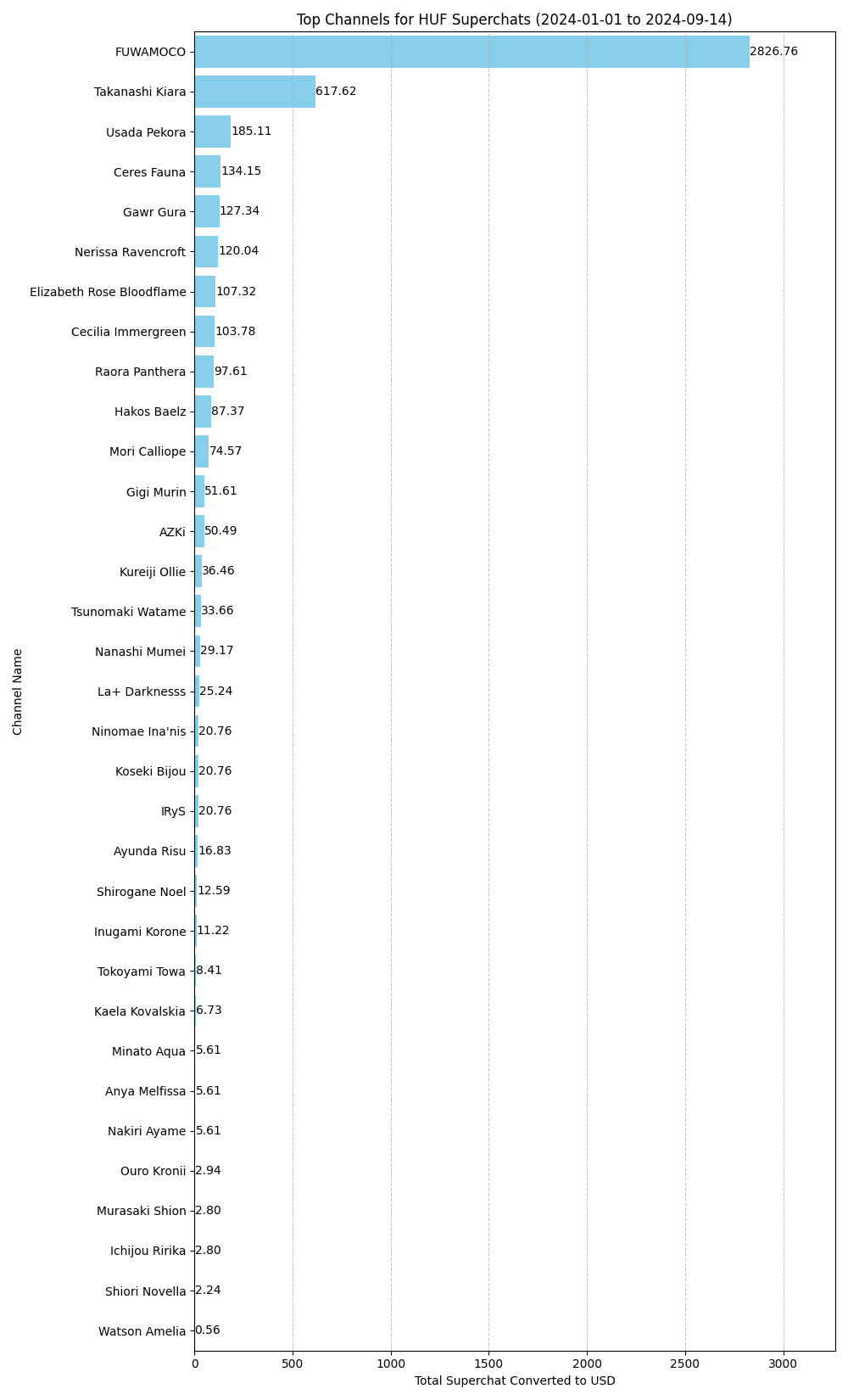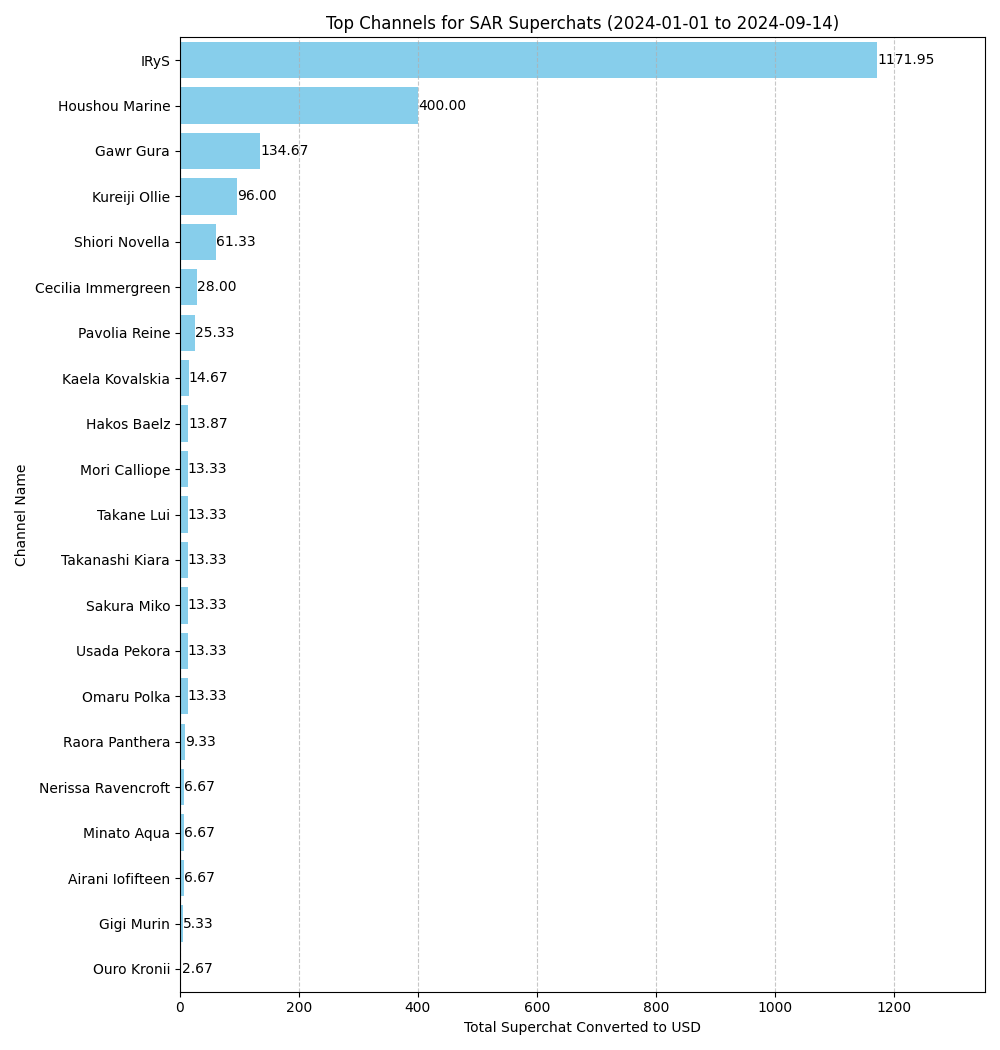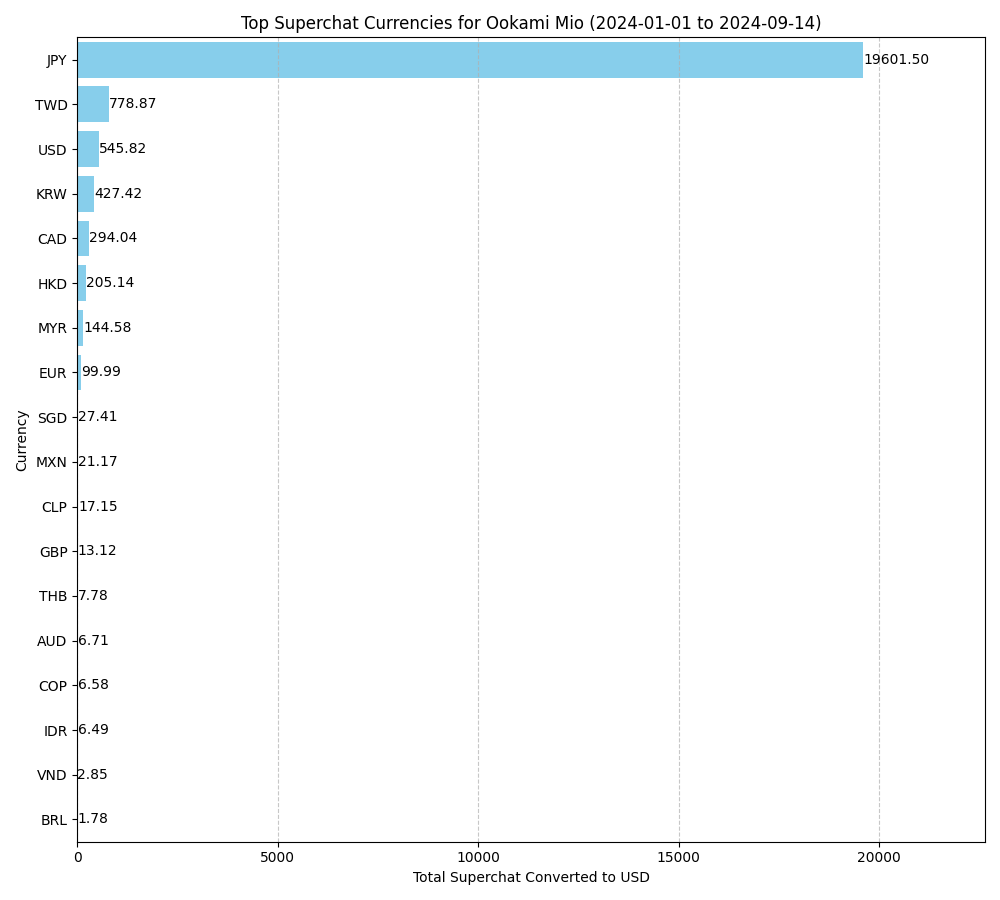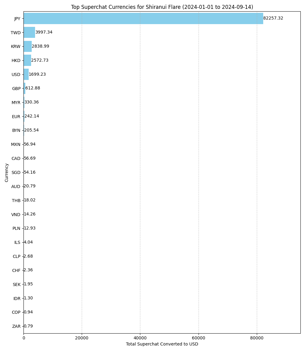 I first substituted non-Latin channel names with their Latin counterparts. Then I parsed the superchats themselves, separating the currency and amount.