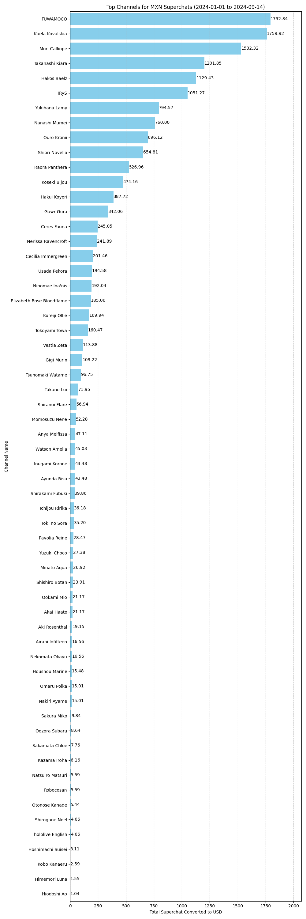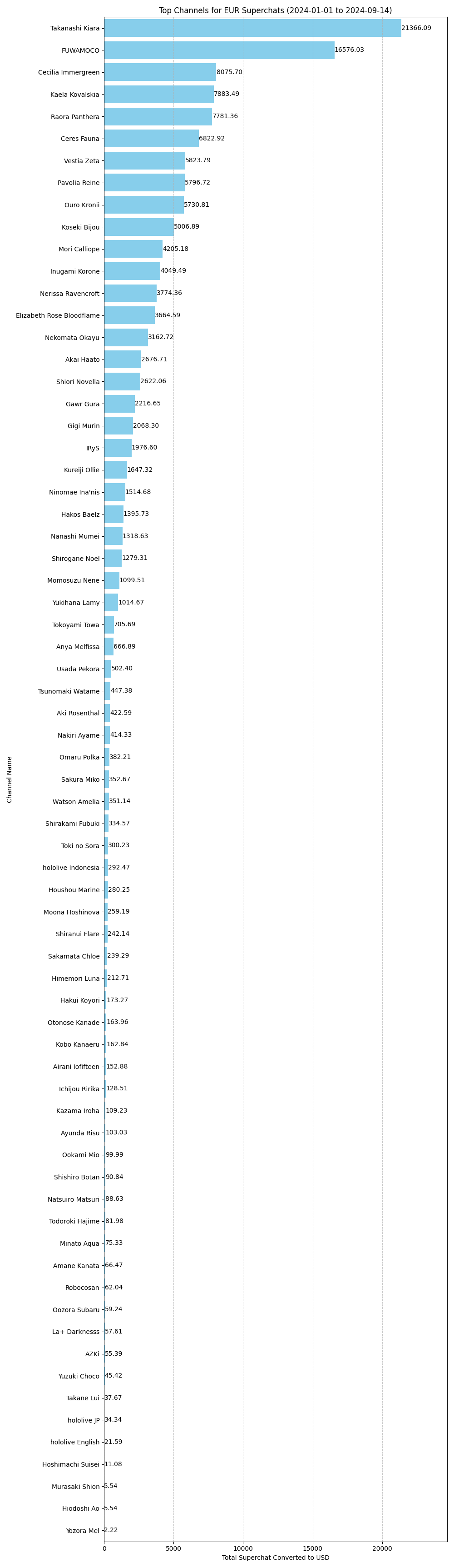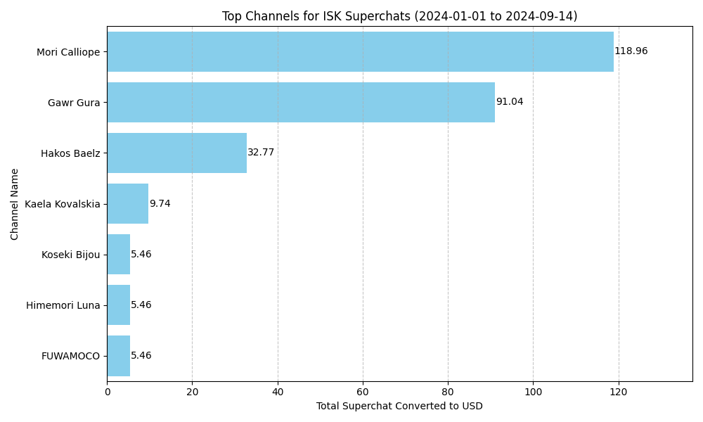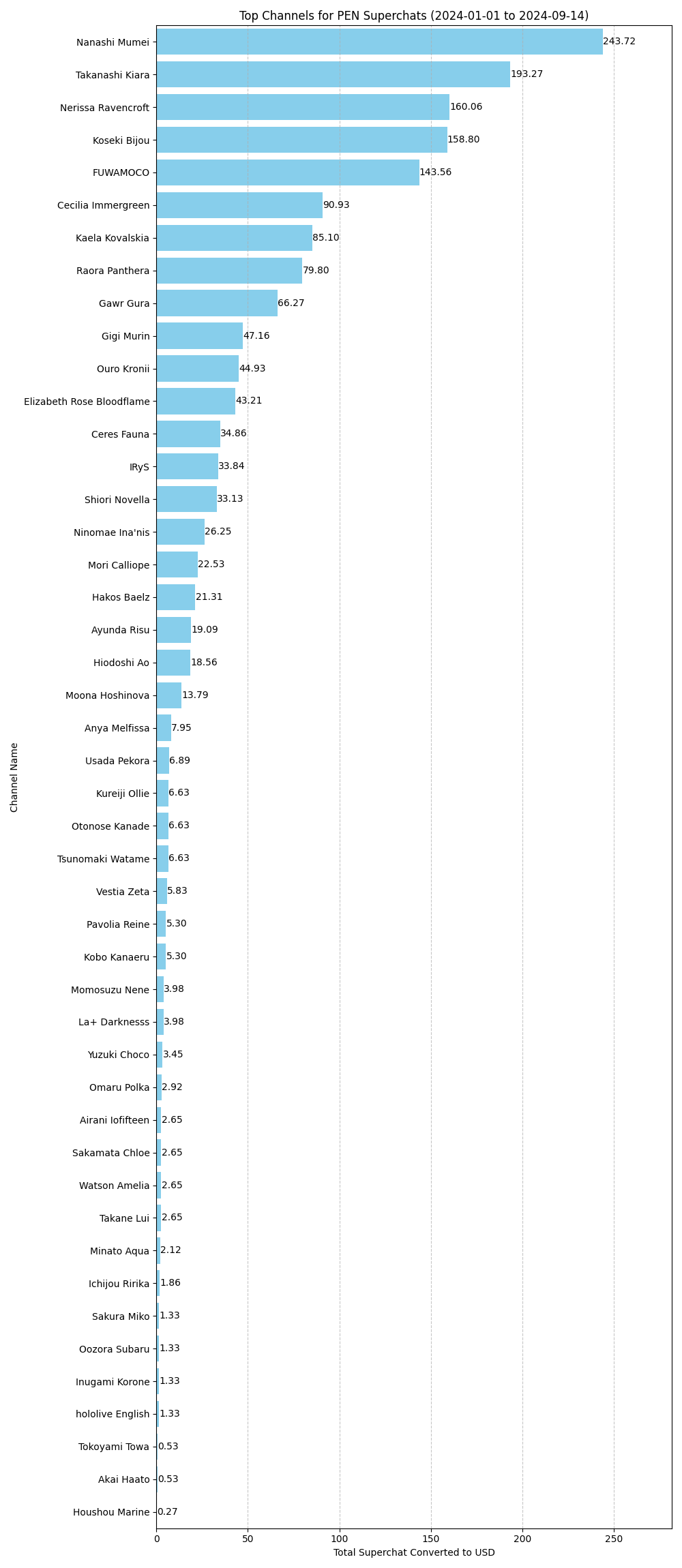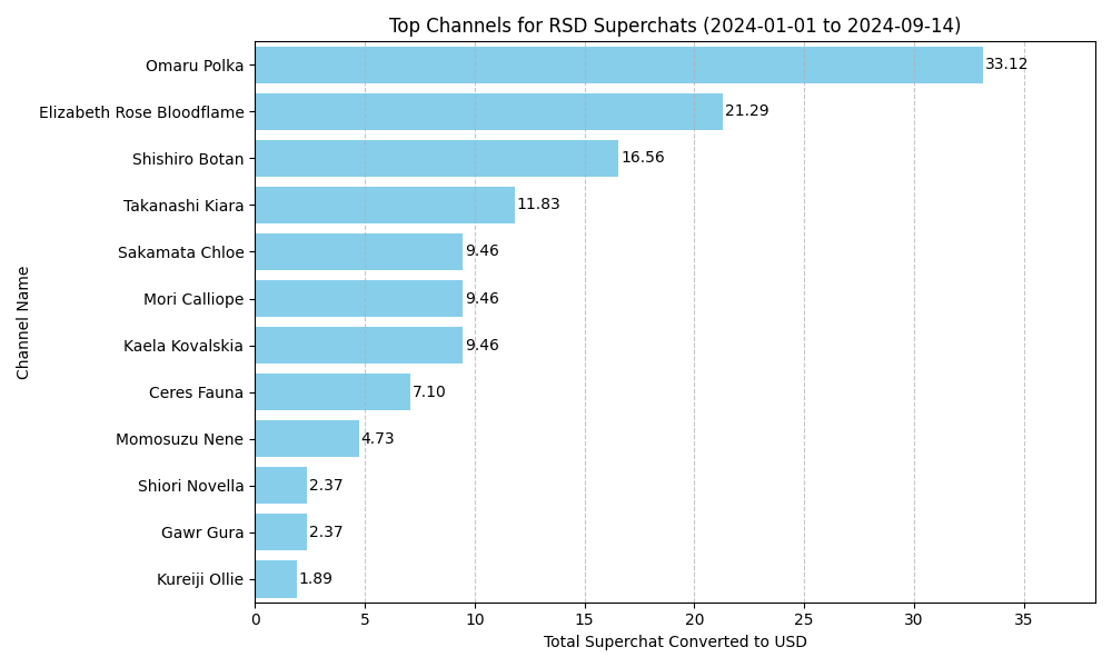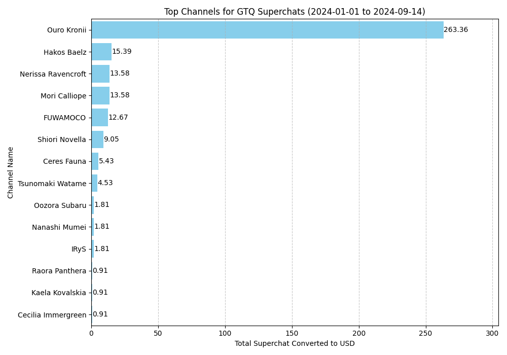 I first substituted non-Latin channel names with their Latin counterparts. Then I parsed the superchats themselves, separating the currency and amount.